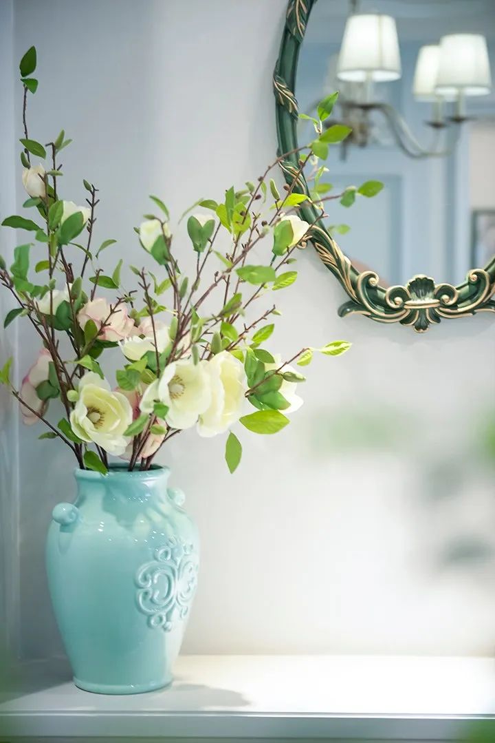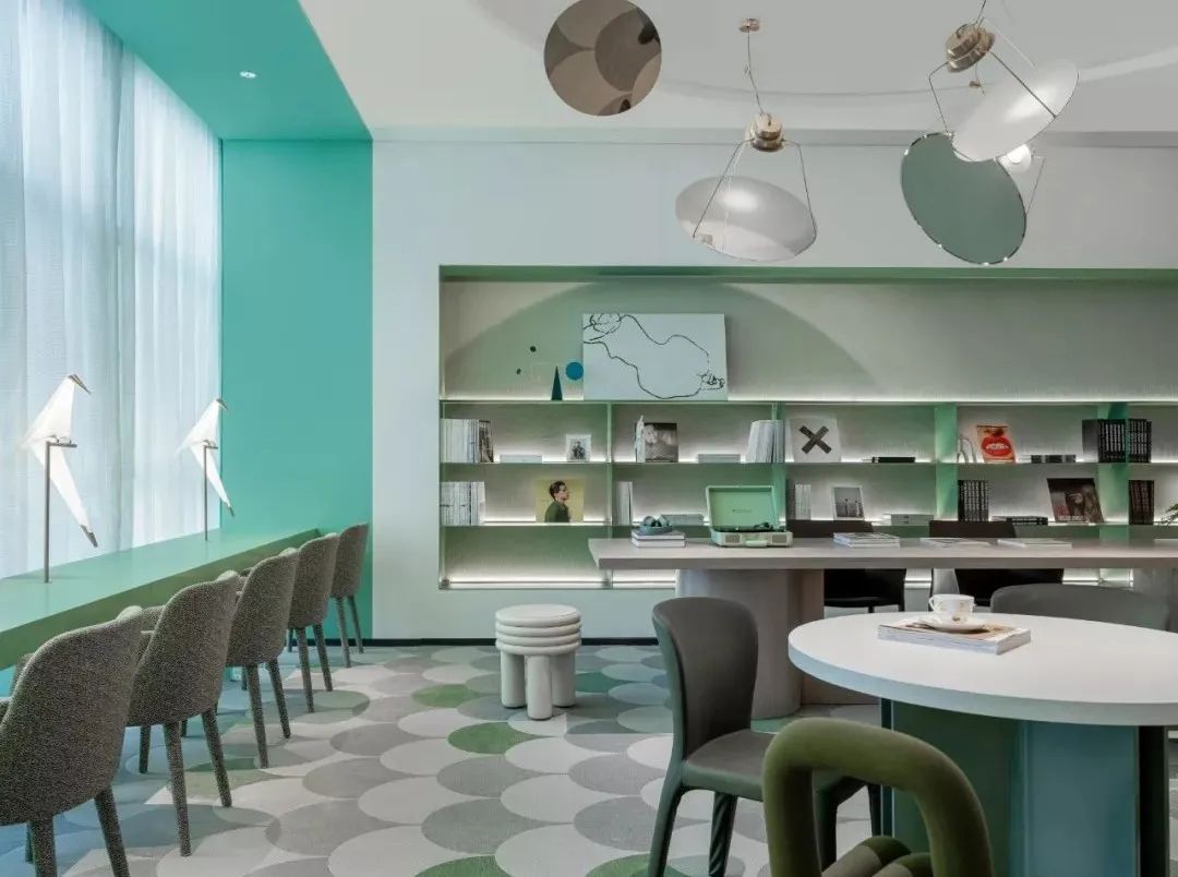 WIPESTAIN艺术涂料蕴涵着万物萌发的无限生机。不同明度和色阶的青色如水彩般濡湿、浸透、调和于空间体块中,由外及里构成天成地接的阶梯式递进氛围。动线中视觉落点的装置器物,则以抽象重叠的褶皱与纹理勾勒细部精微之美,镜面的穿插运用亦带来视错观照的多重意趣。
