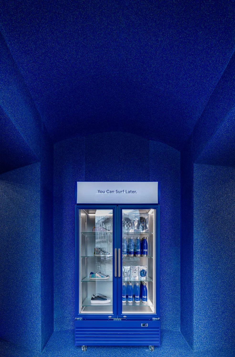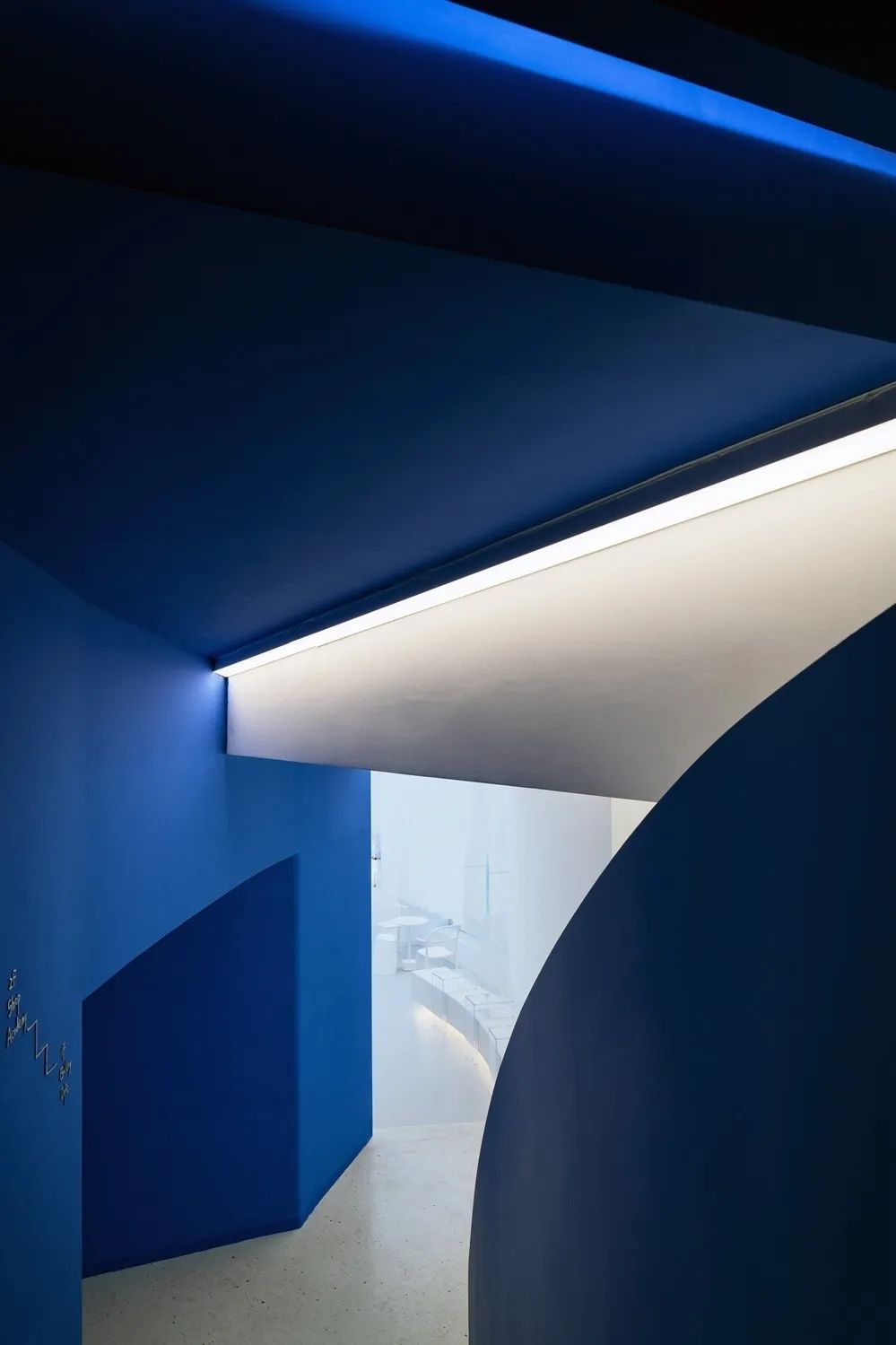 WIPESTAIN艺术涂料克莱因蓝系列这一抹热烈、纯粹又极具视觉侵蚀力的蓝流淌在整个空间,与空间相互融合,构筑出一个经典浪漫又兼具神秘感的空间背景。