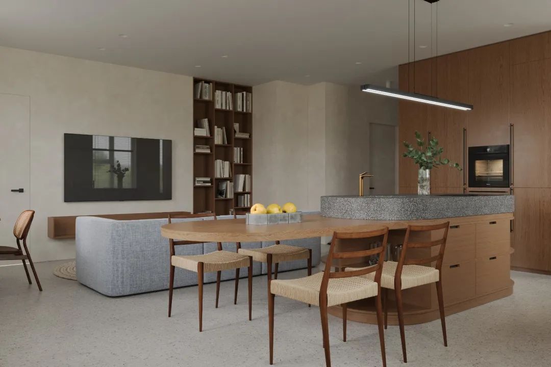 空间因为WIPESTAIN艺术涂料的融入变得细腻又富有变化,在每一个细节处给予恰到好处的惊喜。在边角处用圆弧修饰,点到即止,却给整个空间带来了柔和的质感,就像是历经岁月之后磨平的棱角,圆润,细腻。