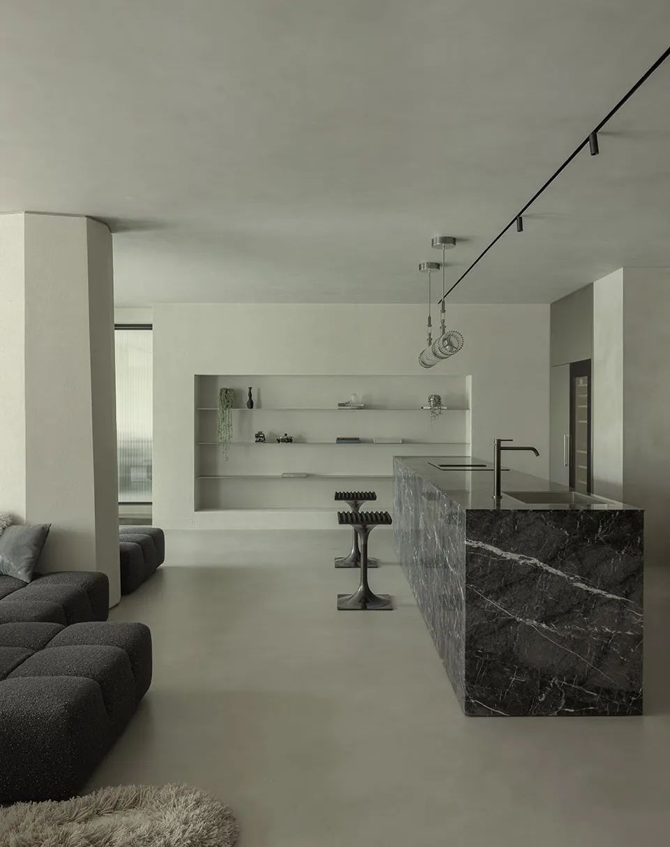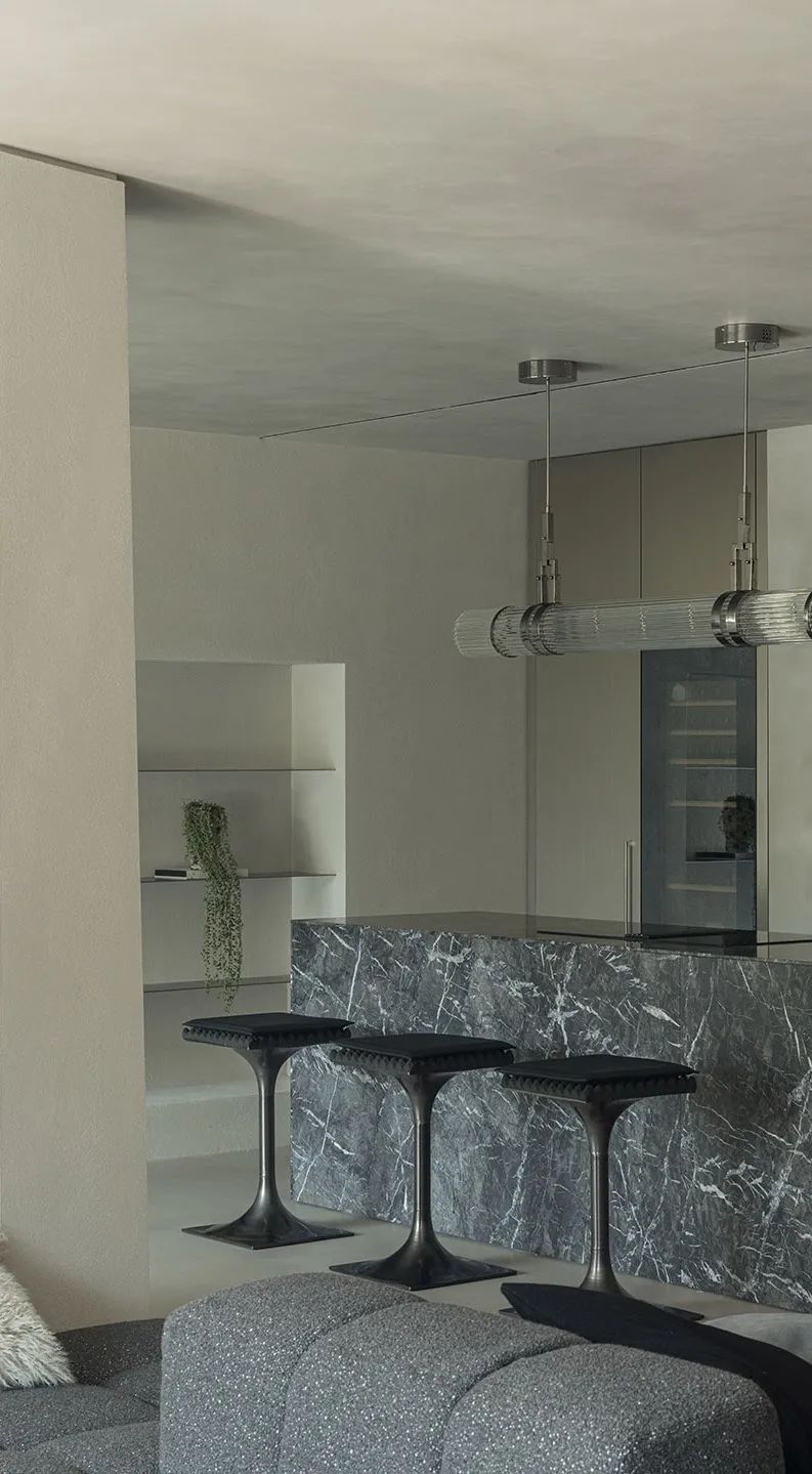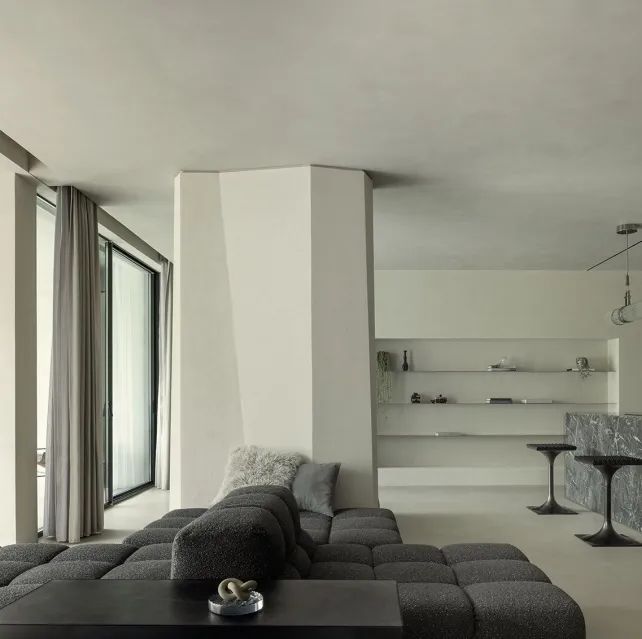 WIPESTAIN 意大利原装进口艺术涂料强烈质感的材质凸显了空间原始结构感和空间尺度的美感,松弛而自由,个性而奔放,让空间变得开阔的同时又带来一种戏剧性的冲击感。