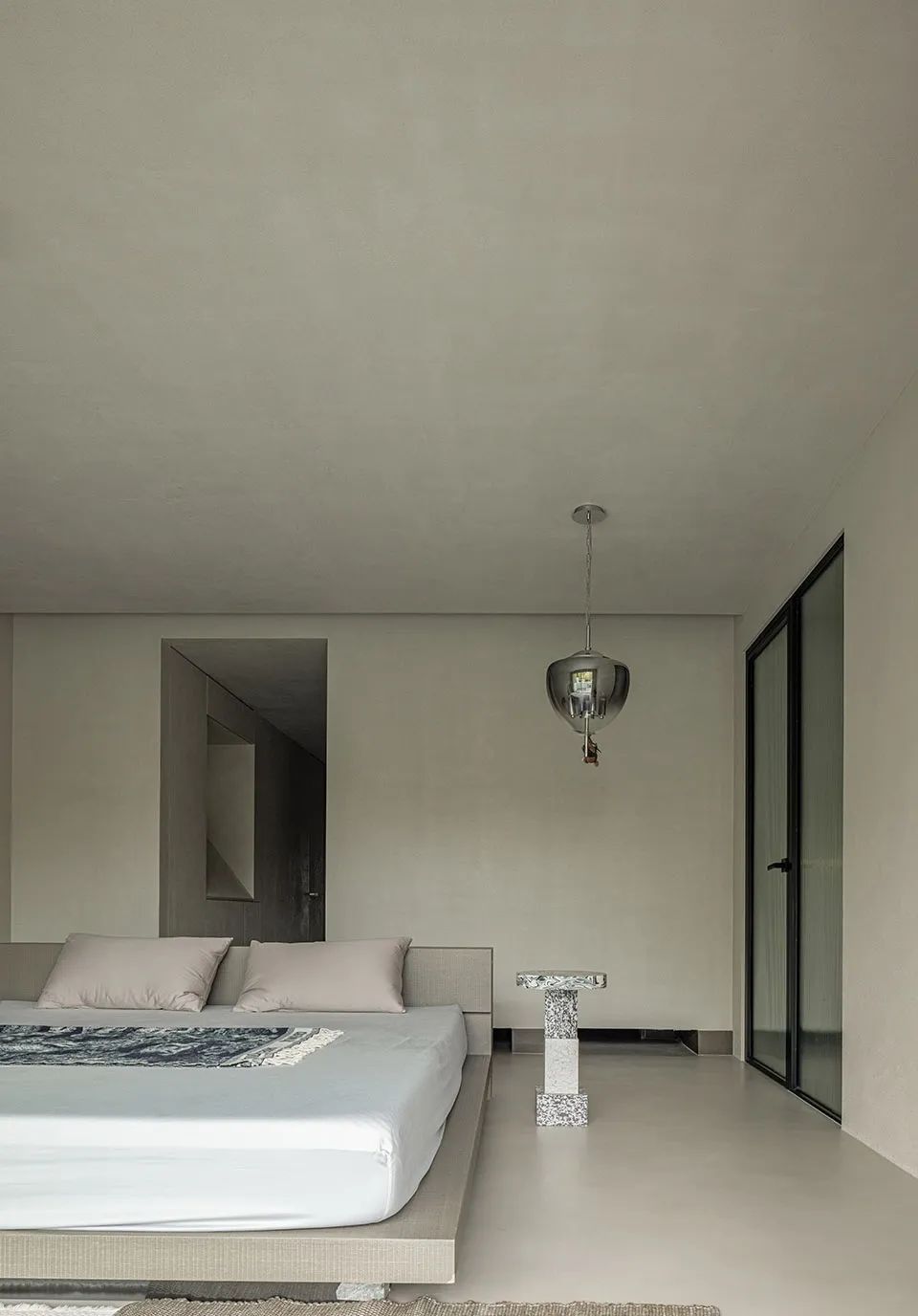 纯粹的艺术与WIPESTAIN墙面材质融合,在极富质感的空间里产生共鸣,呼应着远处的光影,使想象更加具象,梦变得触手可及。