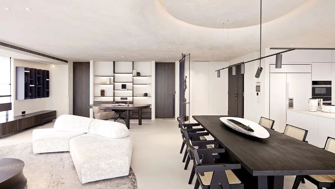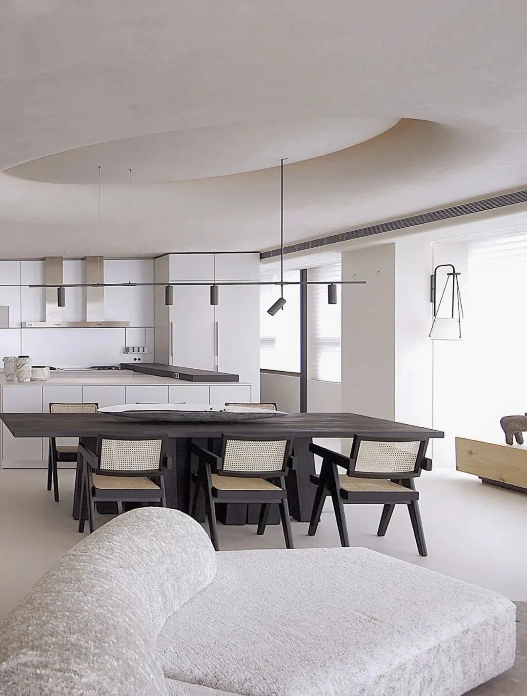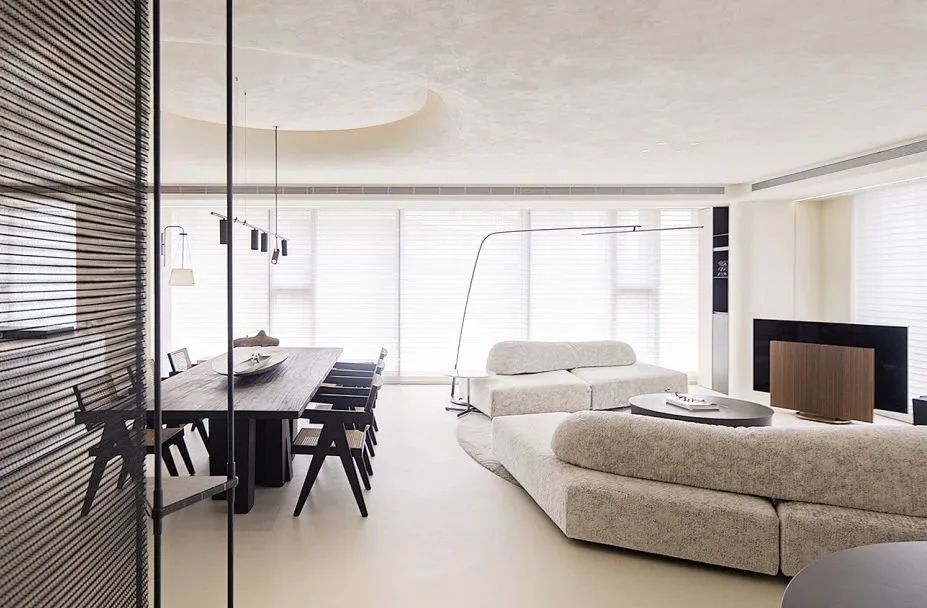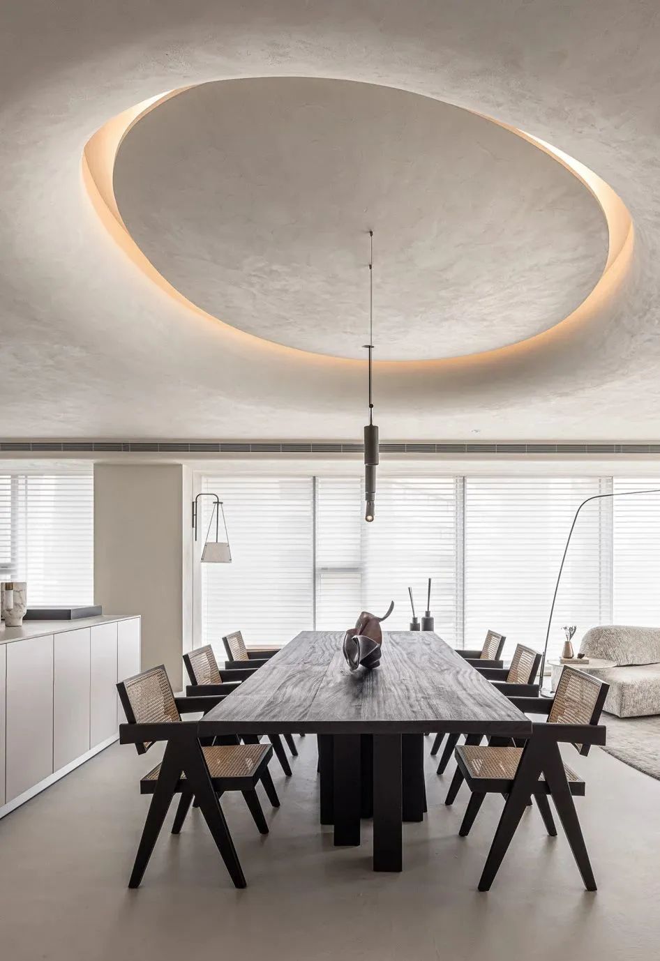 以WIPESTAIN艺术涂料高级灰系列为底色,打造轻盈的空间质感。质感贯穿整屋,赋予艺术氛围。空间的圆弧形设计更巧妙消融空间距离感。