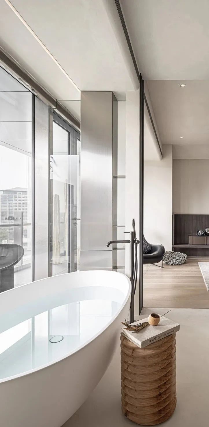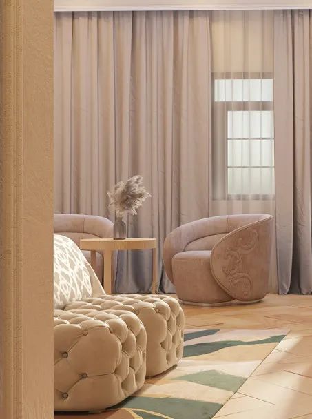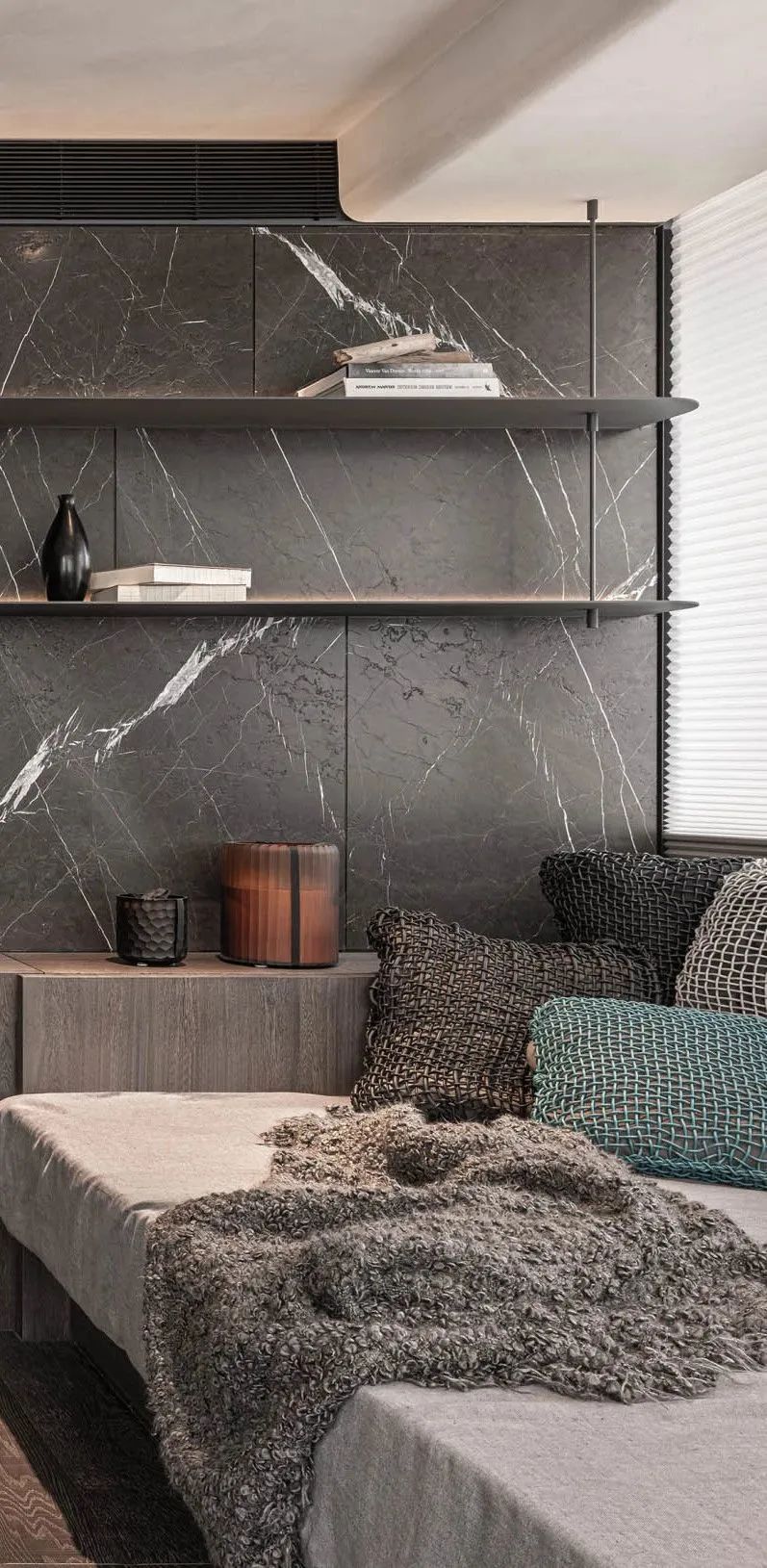 繁复的纹理、材质,分割出纯灰度空间的层次,引入归家仪式感。