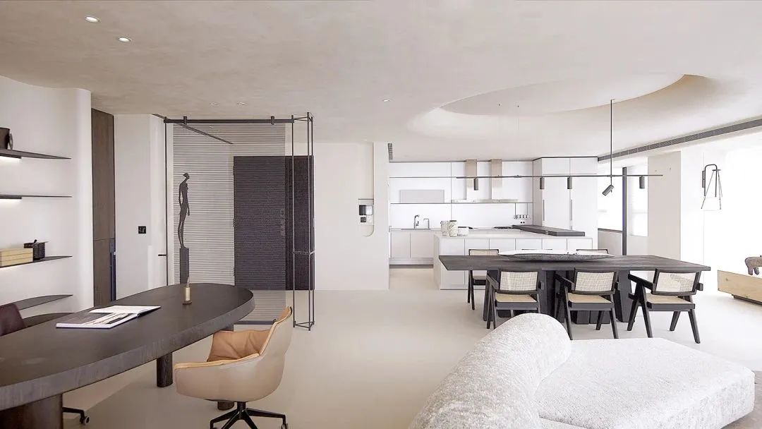 With WIPESTAIN Art Paint Premium Grey Series as the background color, create a lightweight spatial feel. The texture runs through the entire house, giving it an artistic atmosphere. The circular arc design of the space subtly melts the sense of space distance.