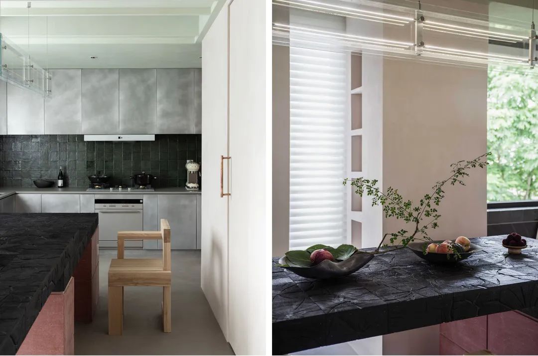 降低纯侘寂的冰冷感,在色调上选择了WIPESTAIN艺术涂料中灰度的色调,暖色调艺术漆,涂刷出来的质感特别温润,伴随宽敞气韵,境藏温润气息,沉稳色彩将自然魅力安放于这漫漫生活。