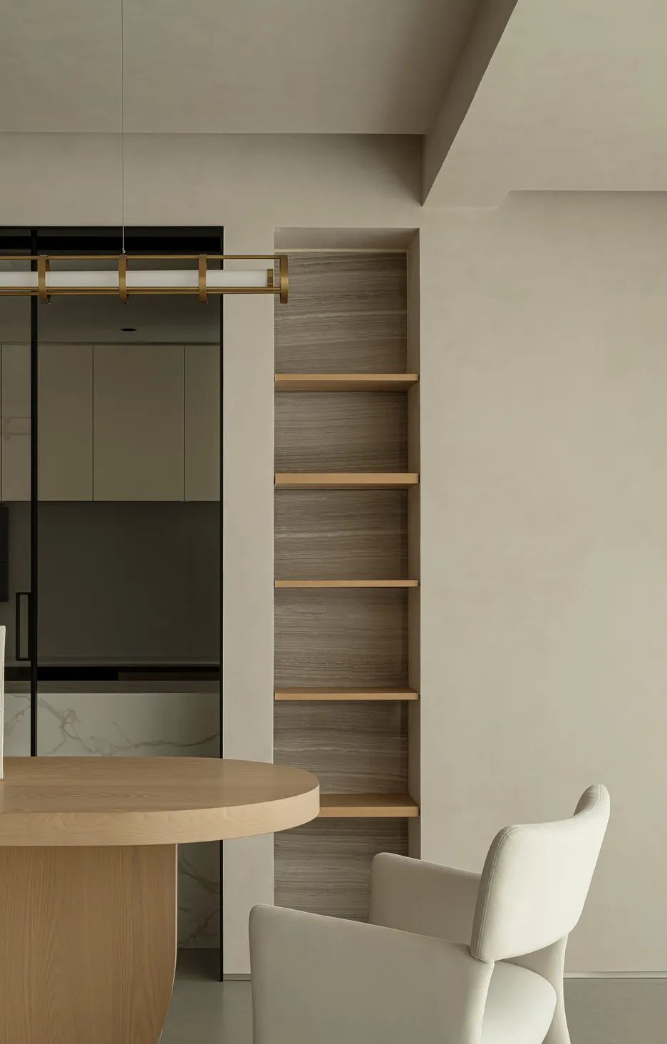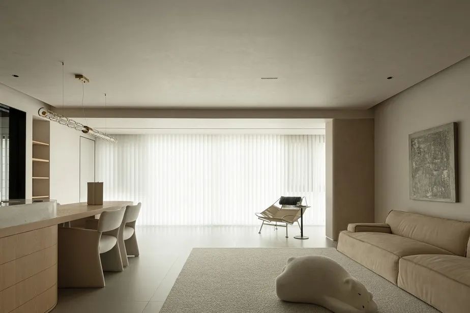 当住宅变得极简,将空间元素统一、简化,并衍生出一股宁静的诗意。看起来简单,实则给人以无限的想象和富有生活气息的空间。没有复杂的颜色,依旧能以利落的线条描绘空间层次,描绘主人的居住态度,希望能从中感受到黑白灰的神秘、坚毅、独立与优雅。