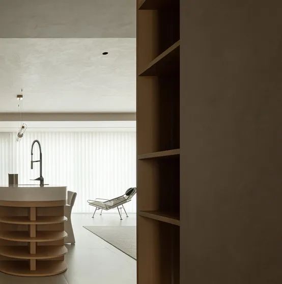 WIPESTAIN艺术涂料墙顶统一的色彩,将空间形成强烈的包裹感,简单的生活或许不会如鲜衣怒马般热闹,却可以精致的如电影情节一般,从容不迫的空间形态往往是状态下最好的治愈。