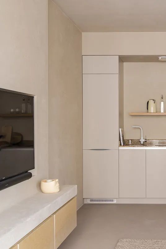 The design of the home strives for ultimate comfort, allowing those who return home to completely relax both physically and mentally. The warm texture of WIPESTAIN art paint makes people fall into a soft "embrace" like fluffy bread, feeling the breath in a living space and enjoying the lazy time hidden in the city.