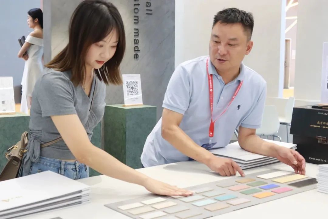 开展首日,WIPESTAIN威普斯丹意大利原装进口艺术涂料展位(广交会展馆B区9.3馆17号)吸引了众多参展者的驻足,现场人流如织。