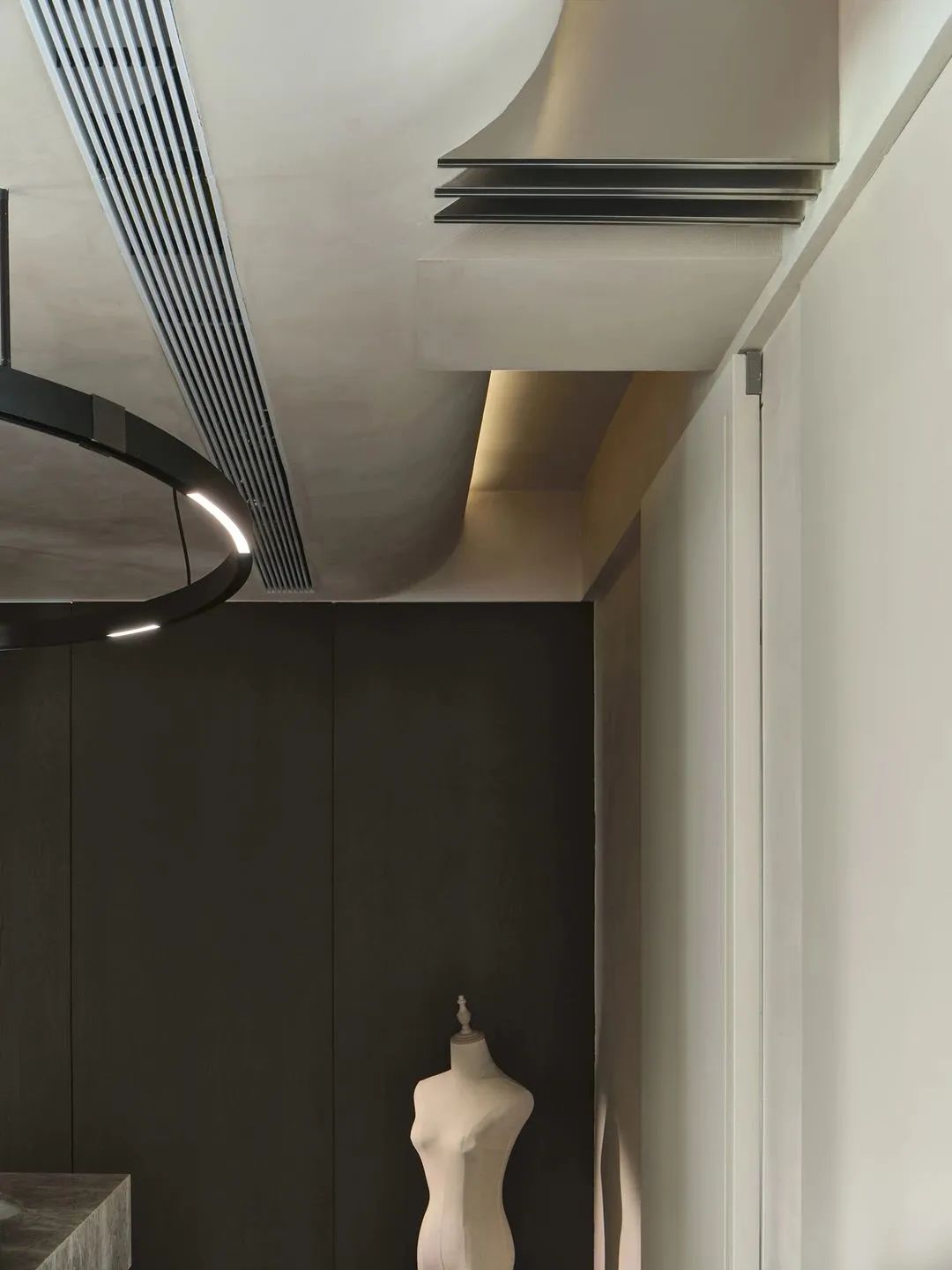 墙顶采用同样的材质,WIPESTAIN意大利原装进口艺术涂料让设计感大大提升,使得空间具有延伸效果,无论在空间哪个区域,处处皆为景。