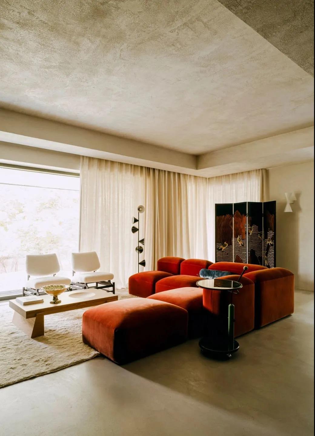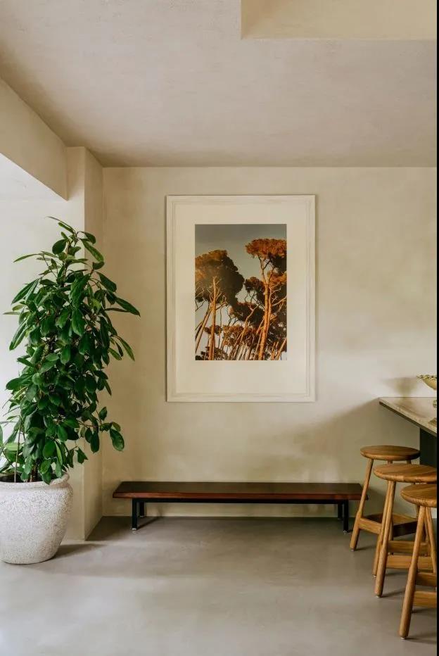 空间的设计延续整体调性将情怀与当代艺术相结合,在WIPESTAIN艺术涂料的平衡下,呈现出一个多元的质感空间。