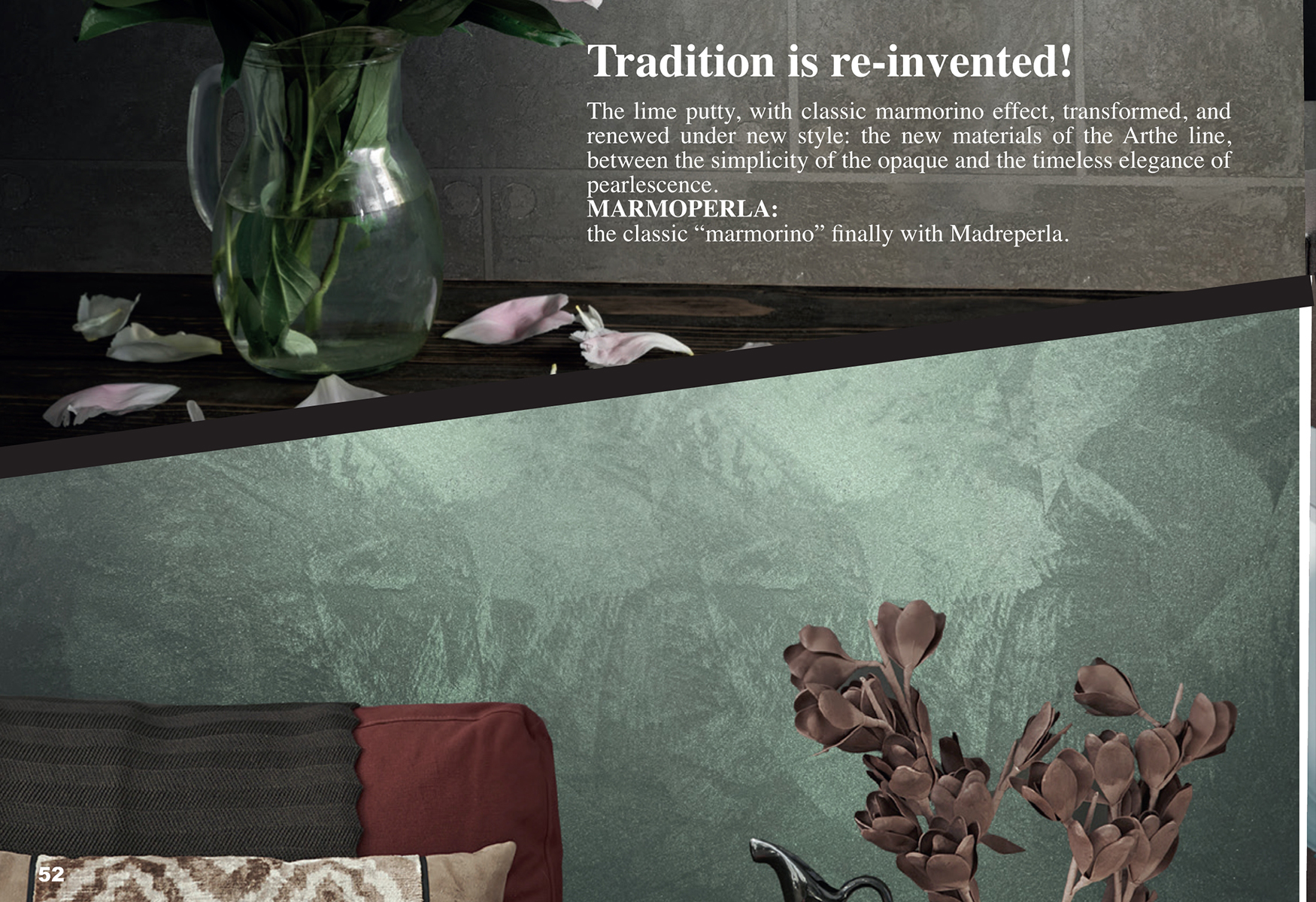 Il grassello di calce, con il classico effetto marmorino, si trasforma, e rinasce sotto nuove vesti: i nuovi materici della linea Arthe, tra la semplicità dell’opaco e l’intramontabile eleganza della perlescenza.